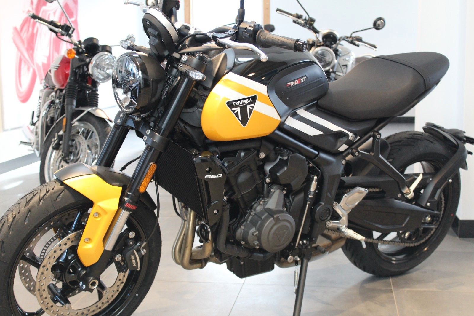 Mitreißende Power und intuitives Handling, ein einzigartiges modernes Retro-Styling, erstklassige fahrerorientierte Technik sowie die bekannt hohe Verarbeitungsqualität und umfangreiche Ausstattung von Triumph.Mit der Trident 660 wird jede Fahrt zu einem echten Vergnügen.